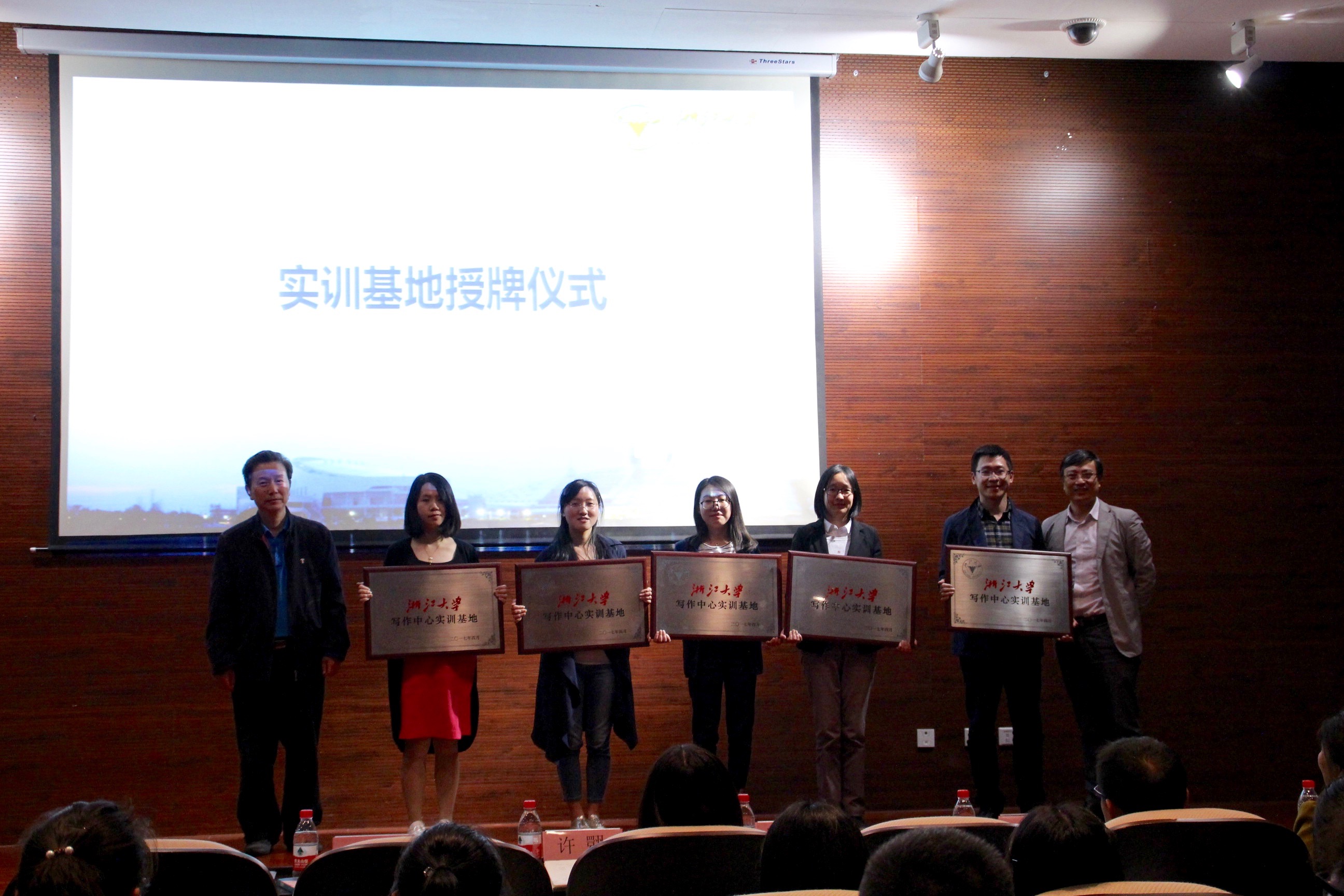文以耕心,耕心种德。一句情怀满满的口号拉开了浙江大学写作中心的开班仪式。2017年4月27日晚,紫金港校区农生环组团112报告厅座无虚席,就连过道上也都挤满了同学,现场格外火爆。校党委学工部部长邬小撑、校统战部主持工作副部长许翾、传媒学院党委书记吕国华、校党委学工部副部长尹金荣、传媒学院党委副书记王玲玲以及浙江大学写作中心实训基地的指导老师出席了本次活动。