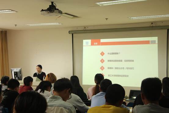 最后,叶鑫老师也为我们介绍了浙江大学官方媒体的主要投入版块:微信公众号、微博和头条号。并肯定了我校新媒体的发展——我校新媒体运营在全国高校排名一般都是前三。