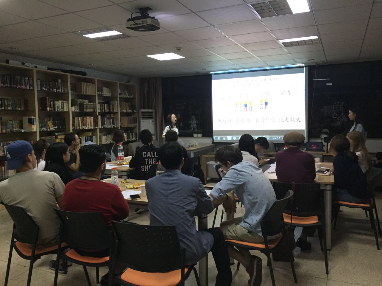 2017年5月10日晚上七点,第42期初中级汉语角在浙江大学西溪校区主楼鸽子屋中如期举行。到场的外国嘉宾有来自韩国、俄罗斯等地的朋友,还有几位热心于汉语教学的中国学生也参与其中。本期汉语角的主题是毕业旅行,外国朋友可以知道如何在中国做好旅行攻略,由2014级汉语国际教育专业的陈奕臻和邵扬意主持。