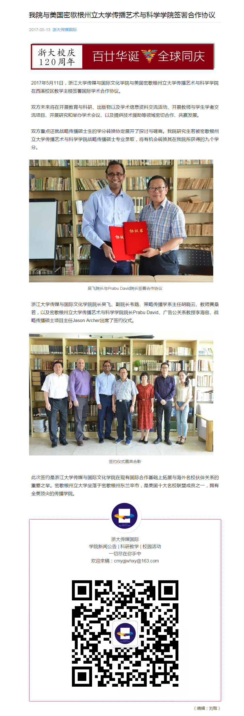 我院与美国密歇根州立大学传播艺术与科学学院签署合作协议