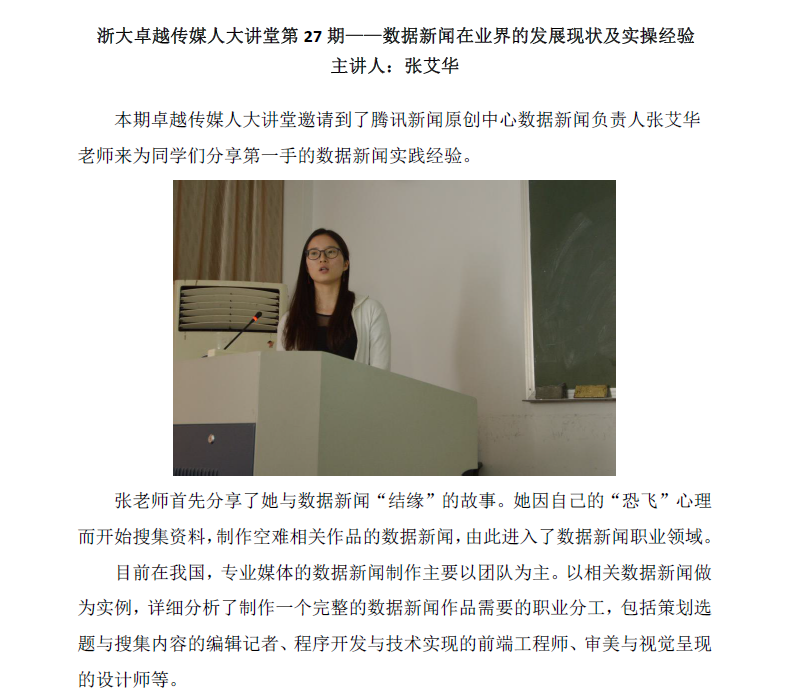 浙大卓越传媒人大讲堂第27期——数据新闻在业界的发展现状及实操经验