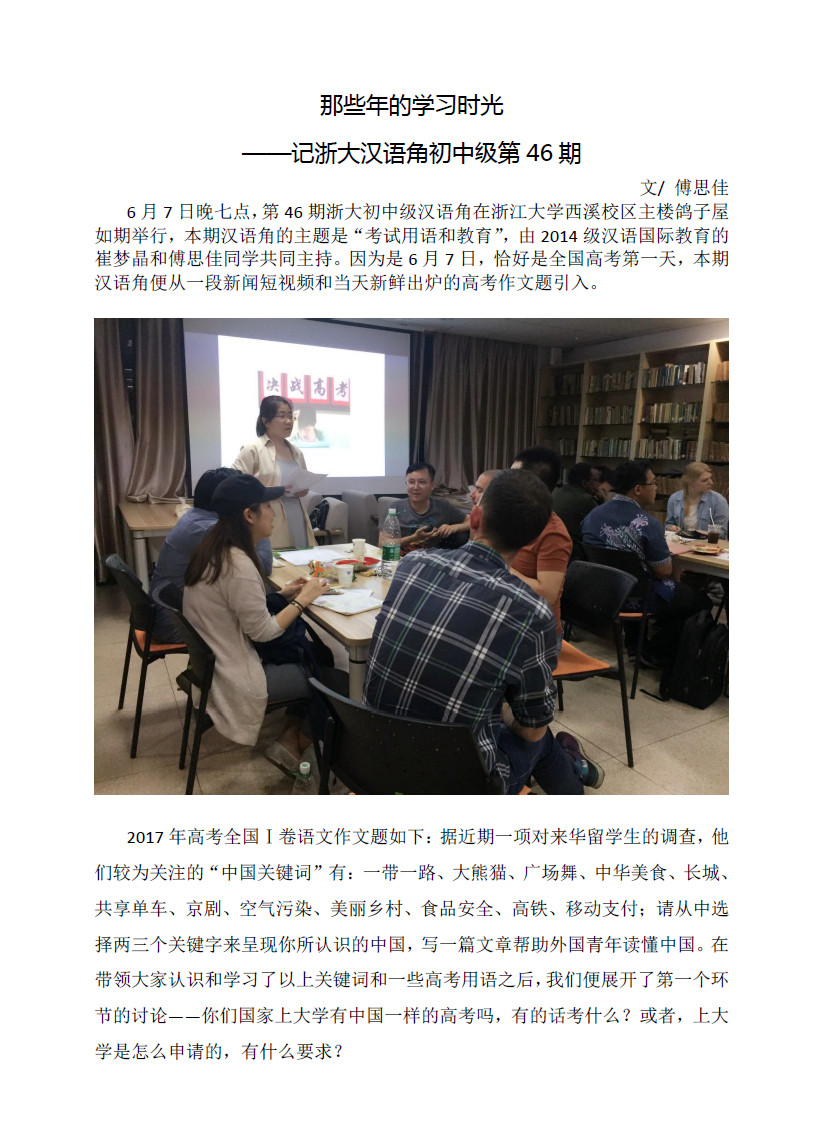 那些年的学习时光 ——记浙大汉语角初中级第46期