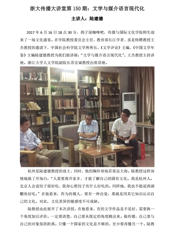 浙大传播大讲堂第150期:文学与媒介语言现代化