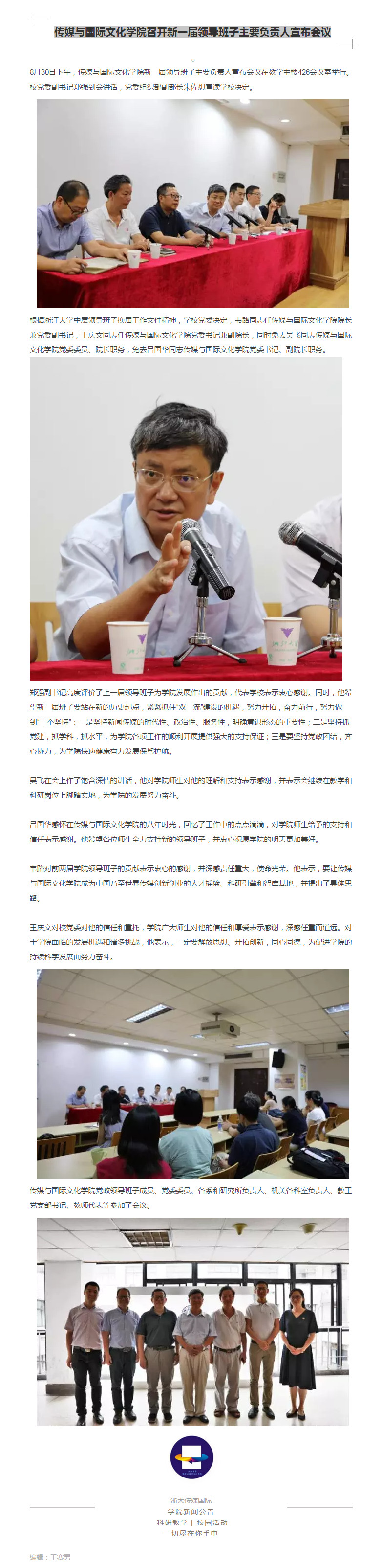 传媒与国际文化学院召开新一届领导班子主要负责人宣布会议