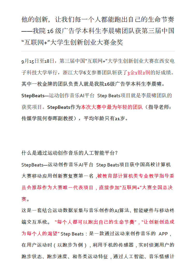 我院16级广告学本科生李晨啸团队获第三届中国“互联网+”大学生创新创业大赛金奖