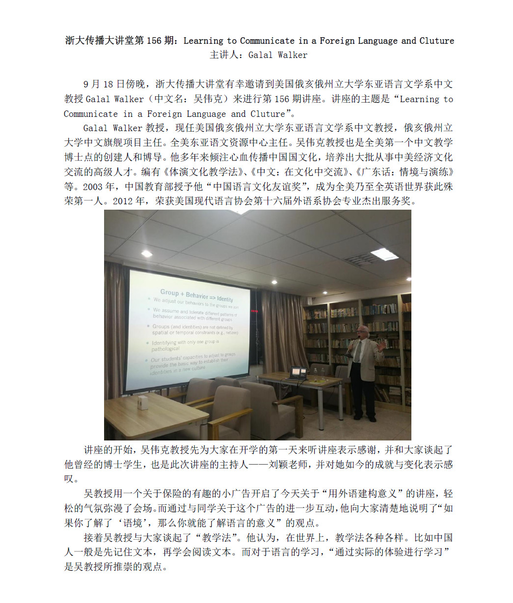 浙大传播大讲堂第156期:Learning to Communicate in a Foreign Language and Cluture