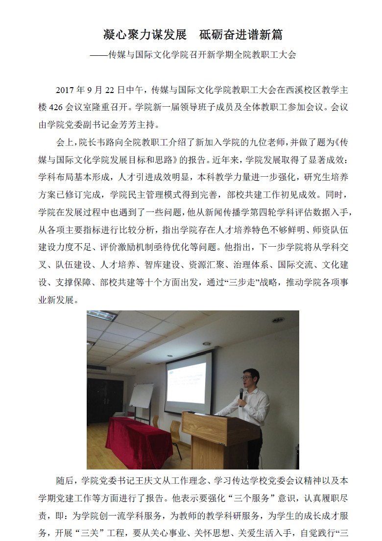 凝心聚力谋发展 砥砺奋进谱新篇 ——传媒与国际文化学院召开新学期全院教职工大会