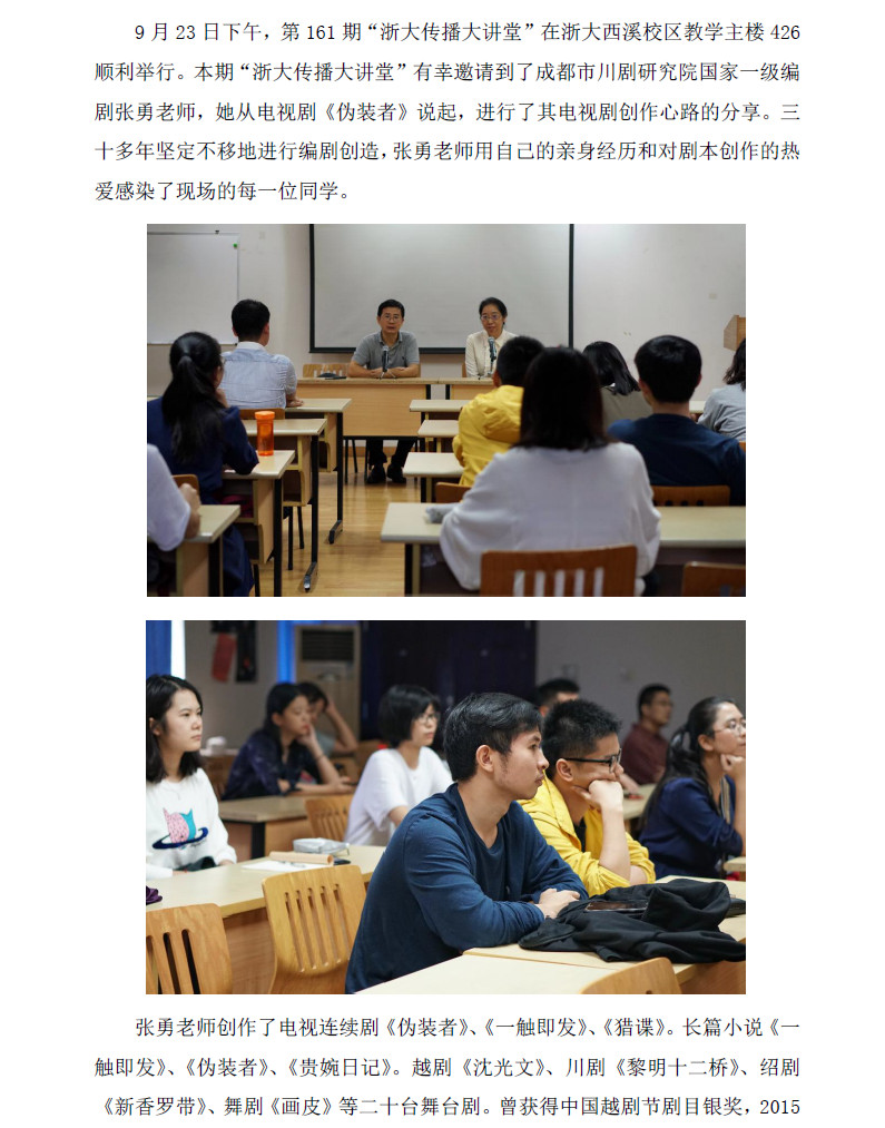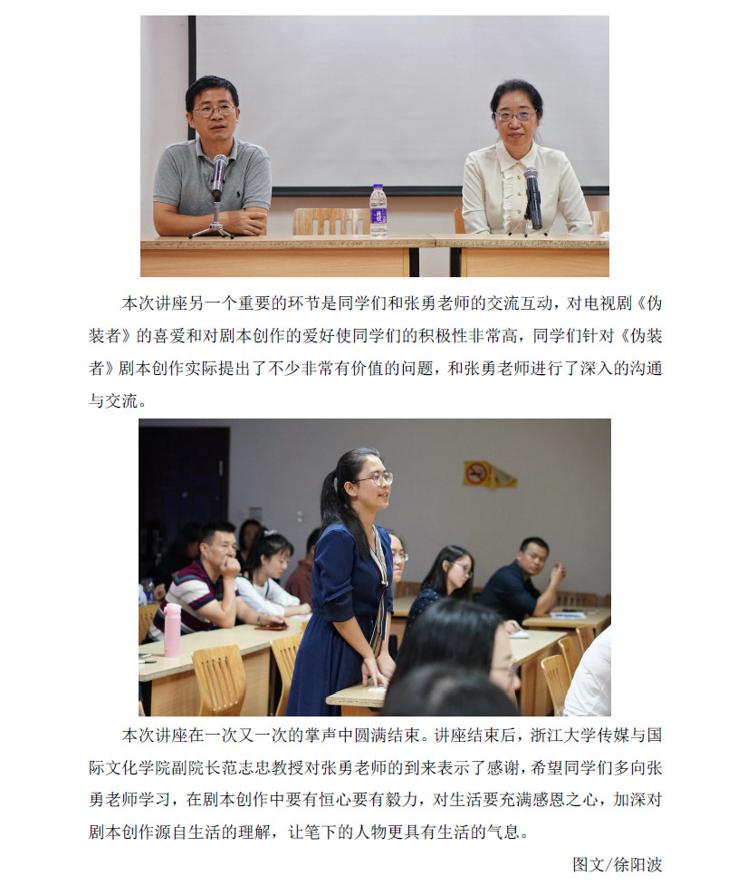 浙大传播大讲堂第161期 ——《伪装者》编剧张勇的电视剧创作心路分享