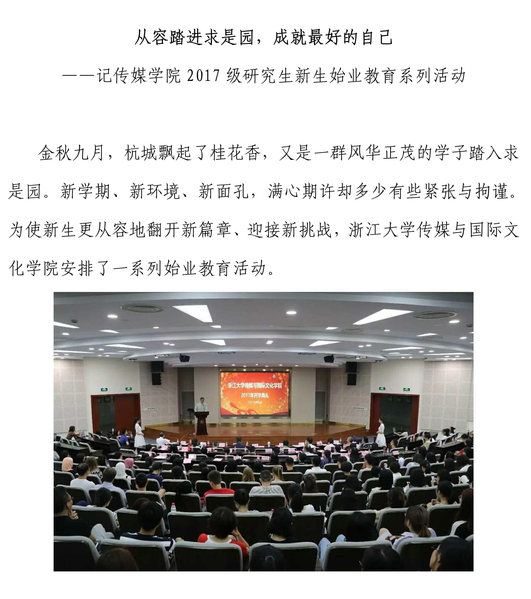 从容踏进求是园,成就最好的自己 ——记传媒学院2017级研究生新生始业教育系列活动