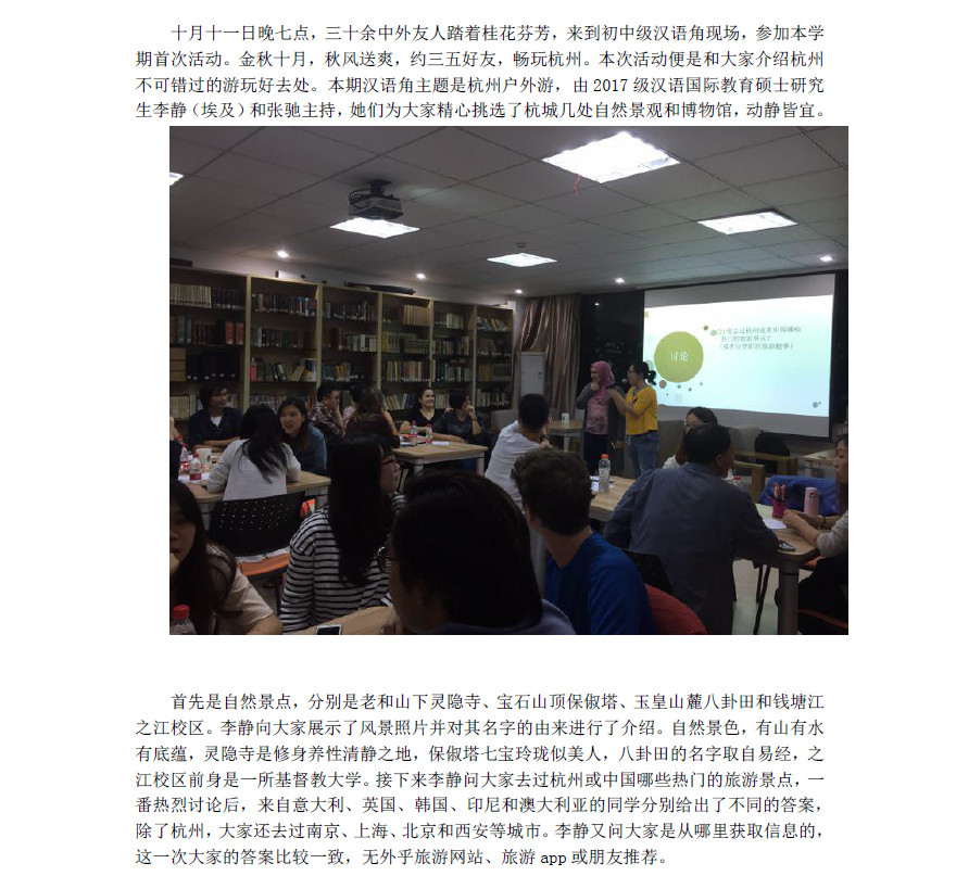 秋风送爽,畅玩杭州 ——记浙大汉语角初中级第48期