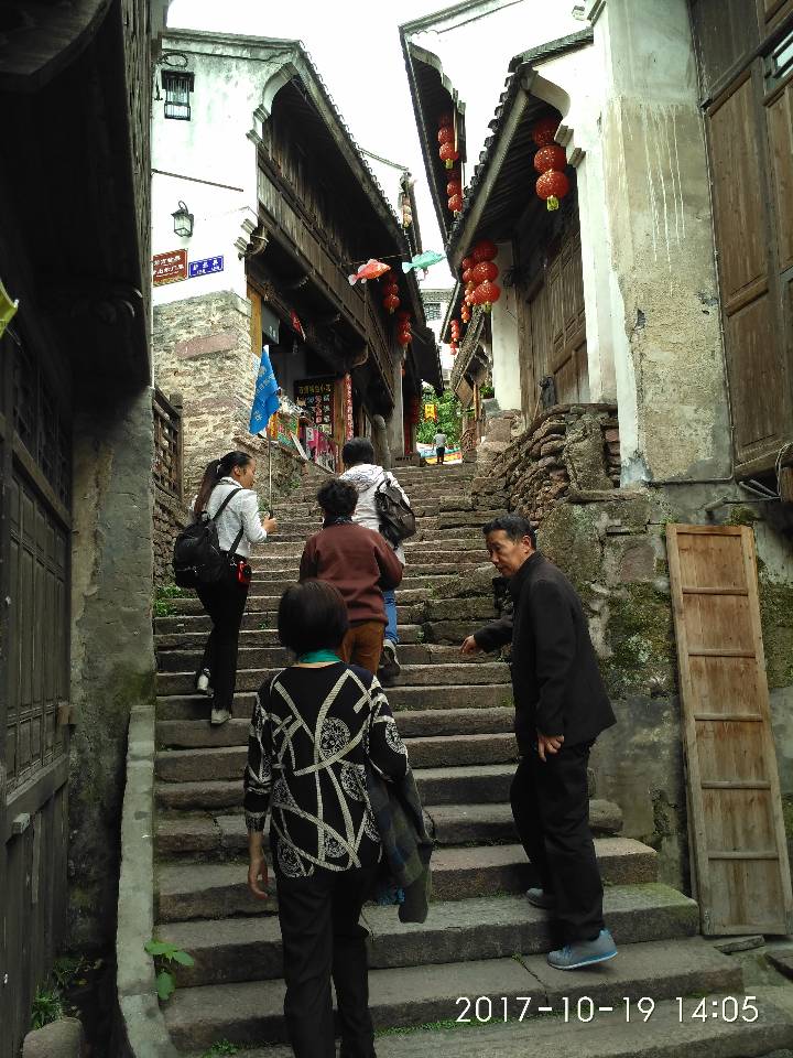 午饭后,我们驱车去了石浦古镇。古镇依山临水,一头连着渔港,一头延伸至山间谷地,所以人称“城在港上,山在城中”。城墙随山势而筑,蜿蜒起伏,居高控港。徜徉在古镇老街,可以领略到明清建筑的风貌和感受到浓郁的渔贾文化气息。特别是始建于明代的中街,昔日曾是繁华的商贸街,即使是今天,仍有沿街店铺100多家,有的卖鱼虾蟹鲞等海鲜,有的卖工艺品,有的卖各式服装,有的卖手机、电器,当然更多的是卖各种小吃和食品的餐饮店铺。而在后街,除了能见到几处别具特色的当年为防火防盗而筑的封火墙,还能时不时地路过一处老宅或古建筑。