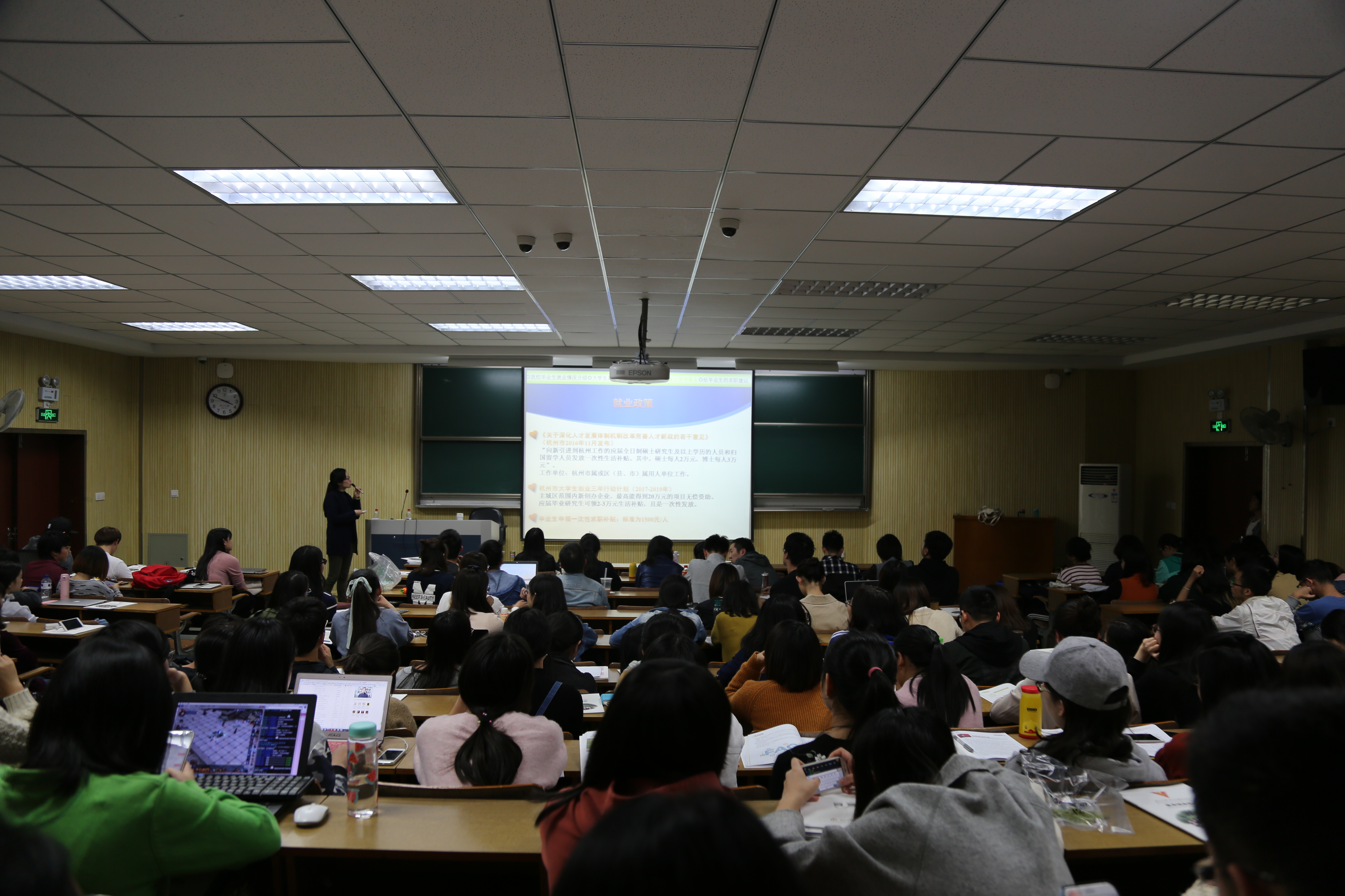10月29日下午,传媒与国际文化学院2018届毕业生就业动员大会暨就业指导会在浙江大学西溪校区田家炳教学楼301多媒体教室召开。院党委副书记金芳芳老师、负责研究生事务的宋芷薇老师以及负责本科生事务的周徐阳老师出席并主持大会。全院2014级本科生、2016级研究生及即将毕业的博士生等200余名同学参加了本次动员会,现场座无虚席,气氛活跃。