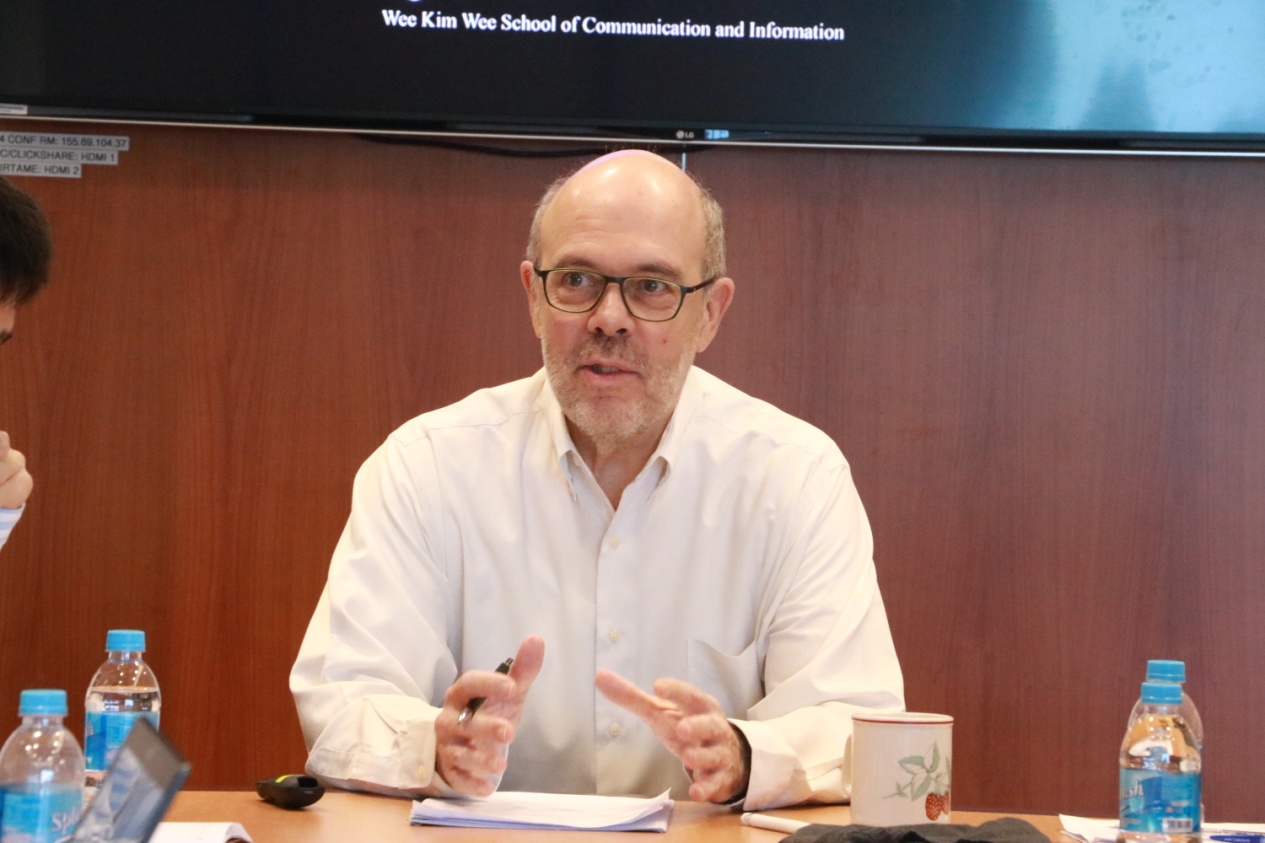 前两场报告会中,浙大博士生于汐报告了新加坡华语电视剧在讲述历史的过程中,如何构建新加坡人的身份认同;梅朝阳探讨了外媒对中国梦的新闻报道中话语建构的策略;郑红红在客观反映论、意向论、构成论的三种立场下,探讨了纪录片真实性的问题; NTU博士生段旭报告了短视频博主和粉丝之间亲密互动关系的质性研究;Clare报告了本地离散人群社交媒体的使用与集体认同建构的研究。南洋理工大学的汪炳华(ANG Peng Hwa)教授,和浙大的李思悦老师针对同学们报告的论文进行了精彩的点评并与同学们展开了深入的学术讨论。