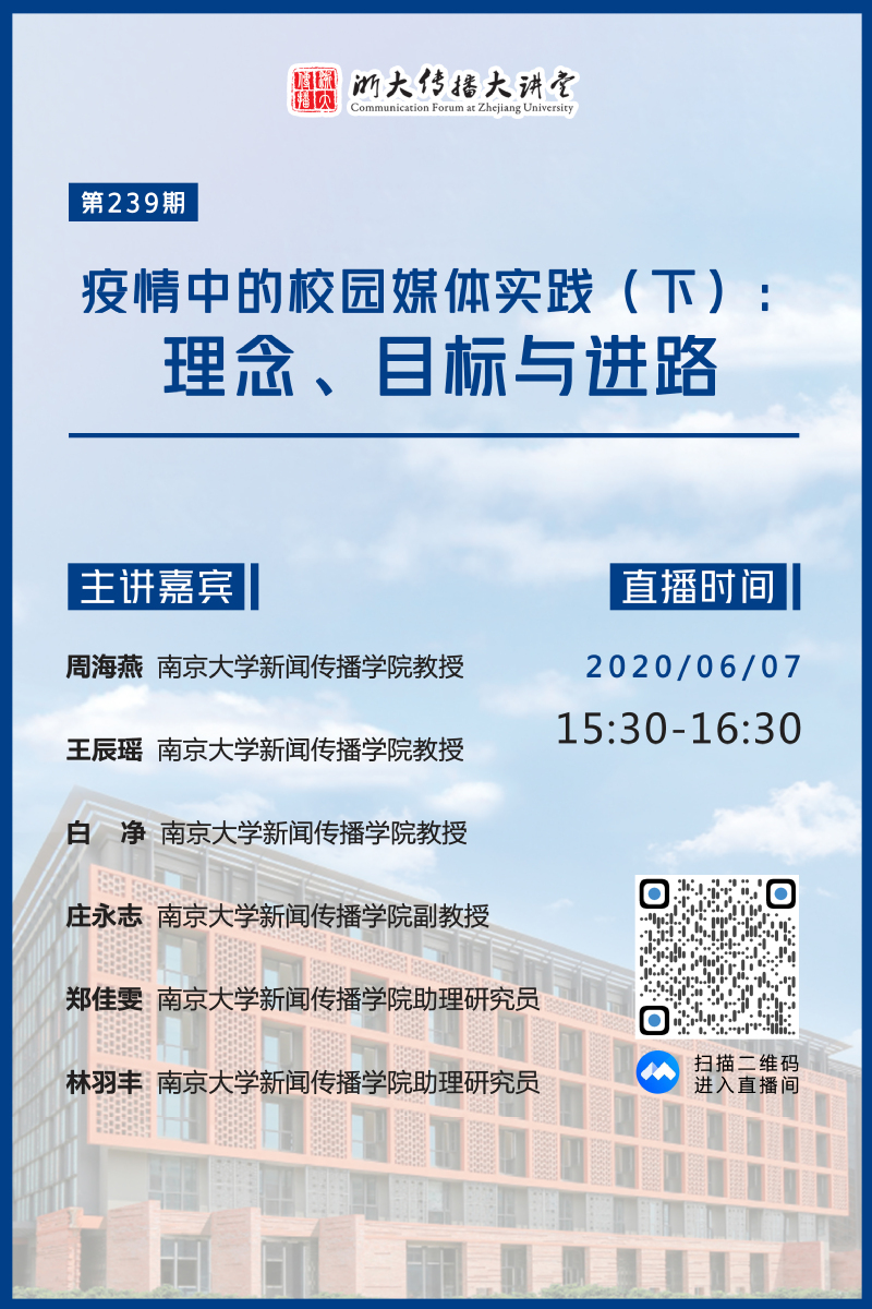浙大传播大讲堂第239期:疫情中的校园媒体实践(下):理念、目标与进路