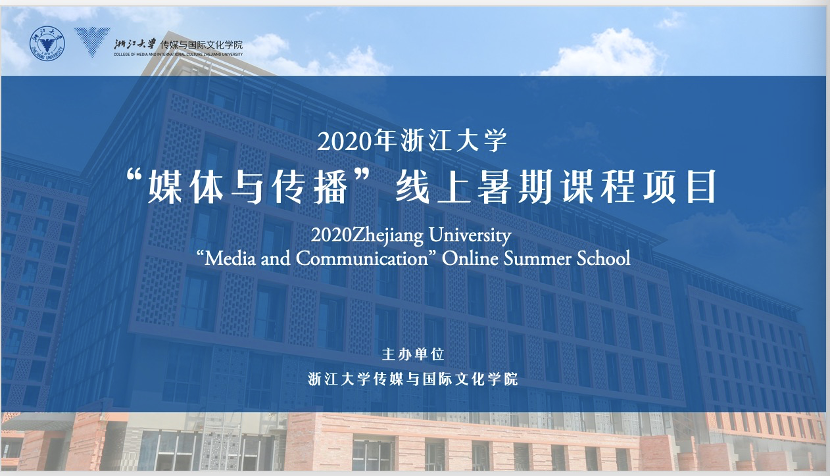 2020年7月20日至26日,由浙江大学传媒与国际文化学院主办的“媒体与传播”线上暑期课程项目如期开展。本次暑期课程邀请了来自美国、英国、澳大利亚、日本等高校的十四位海外学者,为同学们带来了为期一周的别开生面的讲座。