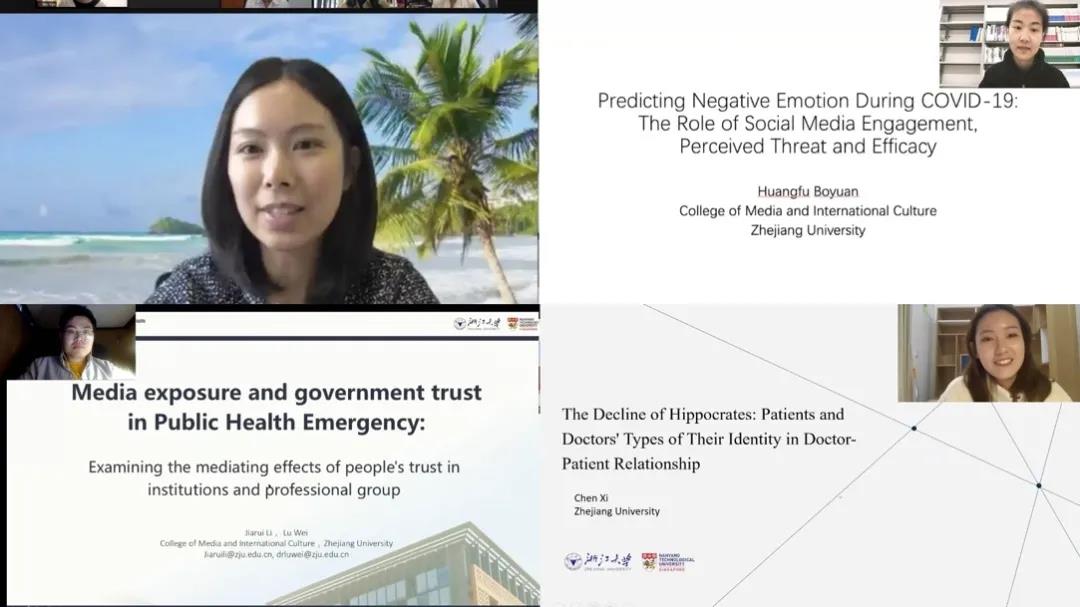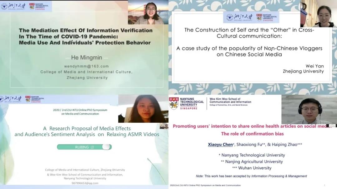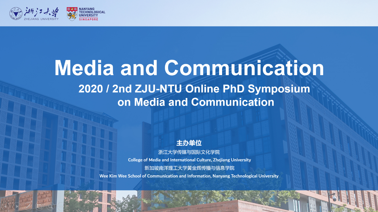 2020101617日,浙江大学传媒与国际文化学院和新加坡南洋理工大学黄金辉传播与信息学院共同举办线上博士生双边研讨会。两校博士生齐聚云端,聚焦“媒体与传播”专题,从不同学术视角和兴趣出发探讨当下热点传播问题。