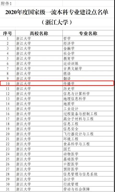 学院新闻学专业于2019年入选首批国家级一流本科专业建设点。目前,浙江大学传媒与国际文化学院已实现国家级一流本科专业建设点全覆盖。