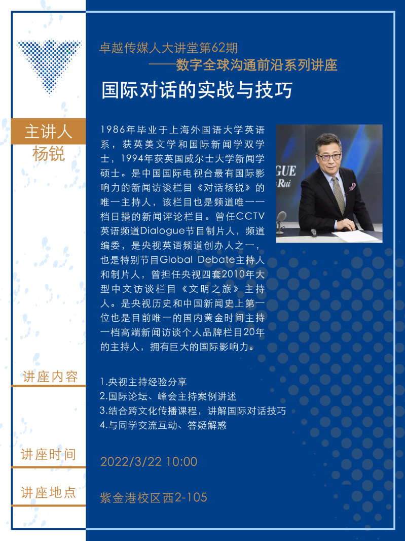 卓越传媒人大讲堂第62期:国际对话的实战与技巧