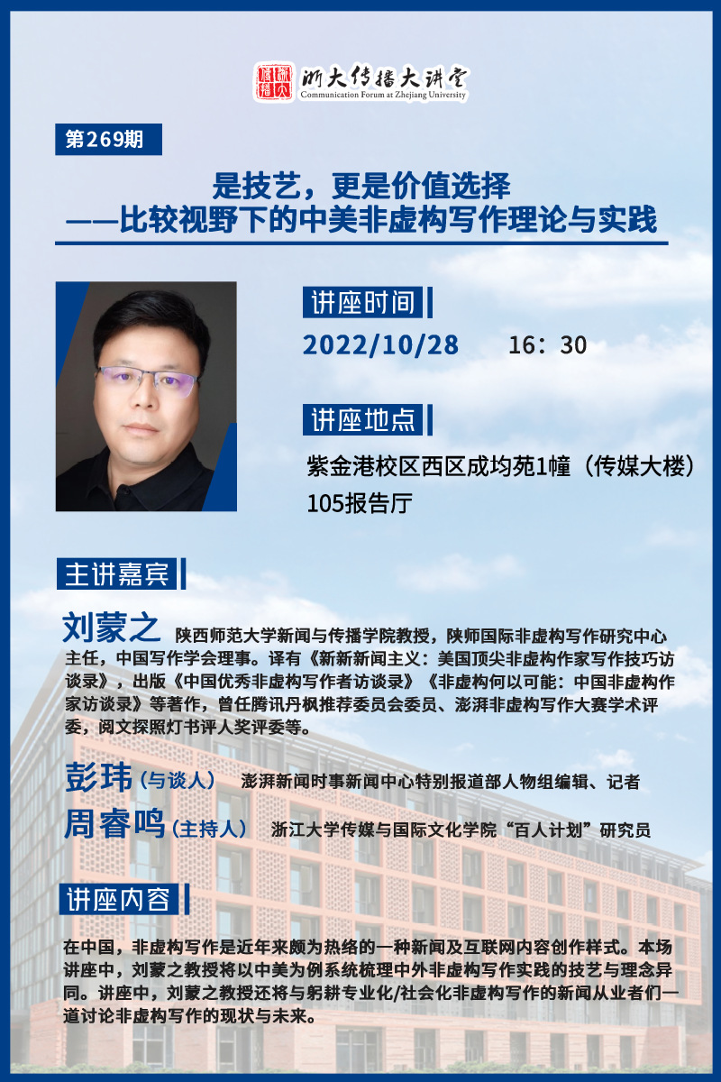 浙大传播大讲堂第269期:是技艺,更是价值选择——比较视野下的中美非虚构写作理论与实践