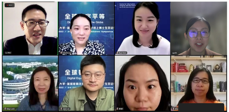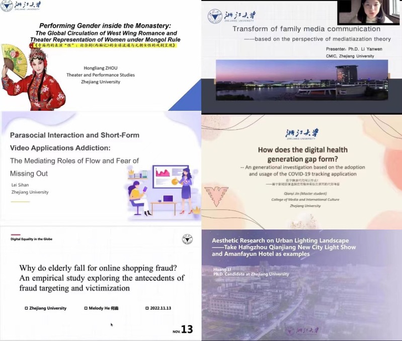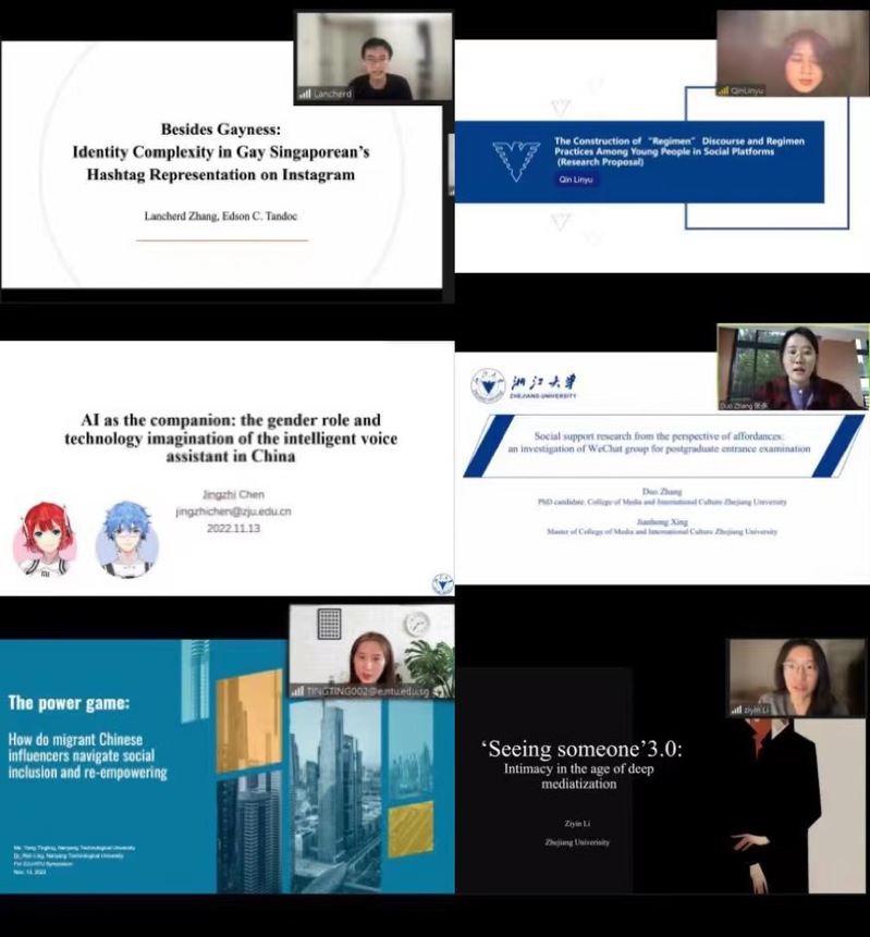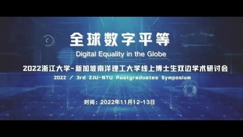 2022年11月12-13日, 浙江大学传媒与国际文化学院和新加坡南洋理工大学黄金辉传播与信息学院联合举办了以“全球数字平等”为主题的第三届博士生双边研讨会。12日上午,开幕式在线上进行,两校师生齐聚云端,从不同学术视角和兴趣出发,探讨数字媒体语境下的问题,共享学术盛宴。