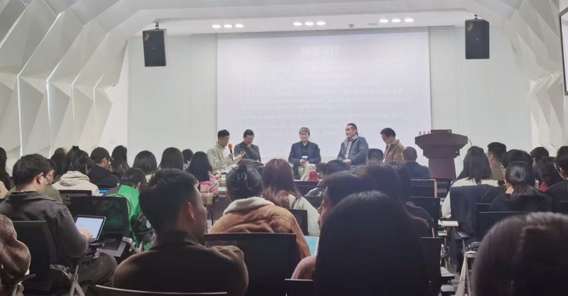 浸润于犀利交流与书香氤氲的氛围,媒介哲学深研会第1期“媒介的意义——艺术与传播”随后举行,本期特邀黄旦、徐岱、周宪三位资深教授对谈,分享好书与好见解。主持人范昀教授表示,除了回应当下的社会文化问题之外,媒介研究也可以采取长时段的历史眼光;正如好学问整合各学科知识,他希望在座学生不囿于一隅地热爱读书,热爱思想,成为更加完整的人。黄旦教授引借米歇尔与说文解字阐释媒介的“居间性”功能,从其新闻学背景的敏感点出发,关注文字、书写与印刷如何影响文学艺术的流变。徐岱教授综合周、黄观点重申了媒介作为手段材料与中介性功能的模态分析二分法,并以跨学科的城市研究为例,指明包含建造行为与建成物的景观是城市学之所以为学科的媒介,以摄影催生现实主义绘画且预示其没落为例谈不同艺术门类互相影响。周宪教授则借18世纪英国如画风景说明不同媒介训练人们观察世界的方法。张佳峰研究员建议人文学者少一点学科意识,多一些问题意识。自由问答环节,话题从跨媒介延伸至跨文化。最后,各位学者期待未来南京大学与浙江大学人文研究团队间保持对话,互鉴互促。