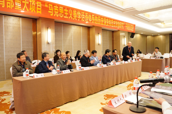 专家组凌继尧教授(东南大学)、高建平教授(深圳大学)、徐粤春(中国文艺评论家协会)、蒋述卓教授(暨南大学)、王一川教授(北京师范大学)、张法教授(四川大学)、彭修银教授(中南民族大学)、张进教授(兰州大学)就项目选题、子课题设置、研究思路、成果形式等多方面内容进行了充分热烈的讨论,提出一系列切实可行的建议。专家评议组认为,“马克思主义美学话语体系的历史演变和范式转换研究”这一选题具有重大理论意义与现实意义,是具有中国特色与时代性的重大论题,也为课题的展开提供了许多宝贵建议:(1)马克思主义美学的研究需要与马克思主义哲学研究充分互动;(2)马克思主义美学研究的视野需要兼顾马克思主义美学谱系与现代美学的整体议题;(3)马克思主义美学研究需要充分结合中国的审美实践与传统文化,充分彰显当代中国的社会气象与时代风貌;(4)马克思主义美学研究需要呼应当代日常生活的审美需要,当代审美教育的“用”之维度等等。经过评议,专家组组长凌继尧教授宣读专家意见,与会专家一致同意课题开题。