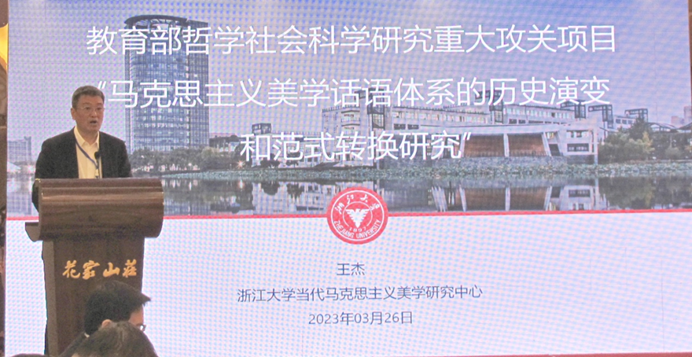 2023年3月26日上午,由浙江大学王杰教授任首席专家的教育部哲学社会科学重大攻关项目“马克思主义美学话语体系的历史演变和范式转换研究”开题论证会在杭州顺利召开。包括中国社会科学院、中国文艺评论家协会、北京师范大学、上海交通大学、复旦大学、四川大学、浙江大学、东南大学、中南民族大学、深圳大学、暨南大学、兰州大学等高校与科研单位的专家学者共30余人参加了此次会议。