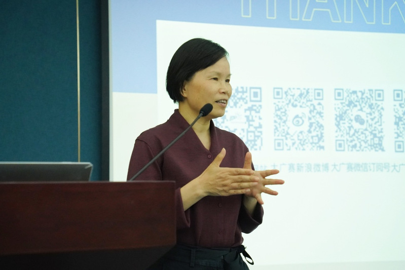 大赛规则介绍完毕后,大广赛浙江赛区专家委员会主任胡晓云老师登台致辞。她讲述了十余年来浙江省赛的创办经历,感谢各大高校师生团队的积极支持和共同努力。浙江赛区对于参赛作品强调“量”更强调“质”,不断精心打磨,才能在全国各大赛区中脱颖而出。同时,组委会与专委会多年来不断改革,坚持完善赛事规则。浙江赛区的评审团队需由学界学者与业界专家共同组成,学者必须为副高以上职称,专家必须获得过省级金奖及以上奖项,且指导老师不得担任评委,最大限度保证赛事公平公正。胡晓云老师表示,“我们赛事最好的成果就是我们的学生,让学生往更好的正道上发展,才是最可喜的事情”。