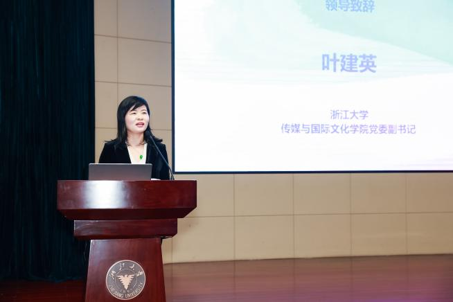 接下来是浙江大学传媒与国际文化学院党委副书记叶建英老师。她提到,省赛创办10年来,在浙江省教育厅的领导和指导下,参赛高校数、参与人数、作品质量、获奖占国赛比例都呈现明显上升趋势。这些成绩的取得,得益于大广赛坚定地贯彻落实党的教育方针,得益于教育主管部门浙江省教育厅的高标准、严要求,得益于业界的深度踊跃参与,得益于省内高校的普遍高度重视,得益于广大学子勇于倾听时代的声音,让青春在拼博中闪耀。浙江大学传媒与国际文化学院作为承办单位,将一如继往地为赛事做好服务工作,接下来还将为浙江省广告专业推出公益课程,免费对全省广告类专业学生开放;还将编著省赛10年、国赛18年的浙江省获奖作品集,将在今年年底面世。