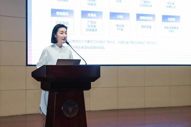 接着,大广赛浙江赛区组委会许今茜老师带来了大广赛要点介绍。她介绍了竞赛类别,大广赛发展到今天,征集作品类别也在不断丰富,其类型囊括了所有的广告形式,代表了移动互联网的方向。为了让更多的师生了解大广赛的流程规则,许老师明确介绍了竞赛的时间轴,以及学生参赛流程。同时,她也讲解了省赛平台参赛注意事项,以及参赛过程中需要注意的问题,以便让更多的参赛师生了解明晰。