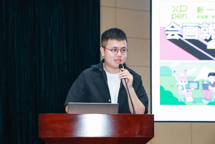 随着会场的气氛达到高潮,各个命题品牌纷纷带来题目解析,为师生们带来满满干货。XPPen品牌负责人尤超先生率先发言,他强调了品牌策略点,阐述了XPPen“自由灵感,创作真我”的核心理念。今年的品牌命题分别从三个方向展开,给参赛师生带来了更大的创作选择空间,既可以选择品牌向的“会画就用XPPen”,也可以选择产品技术向的“新一代Artist手绘屏”,通过对比传统制图模式与数码绘画模式的特征,说明了数码绘画模式的可观发展前景,更开设了自主创作主题,主题不限,可以自由发挥创作。