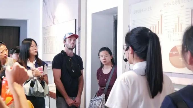 河坊街作为杭州旅游文化的代表景点之一,是本次浙江大学中欧国际中文教育多元合作与探索项目文化体验的第一站。首先到达的方志馆望江馆区,设有杭州概览、灵秀江南、政通人和、人杰地灵、文化渊薮、物阜民丰、民俗风情、修志问道8个展厅,按照地方志“横排门类、纵述史实”的体例,展示了杭州8000年文化史和5000年建城史。