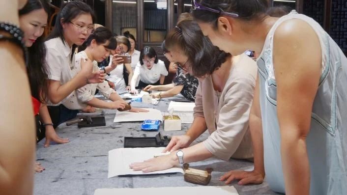 雕版印刷,是让文字跨越时空的艺术。在方志馆老师的指导下,教师团队深入了解了传统的印刷技艺,还自己动手体验了雕版印刷,感受了文字与纸张间的独特联系,更加深刻地理解了中文的演变与传承。