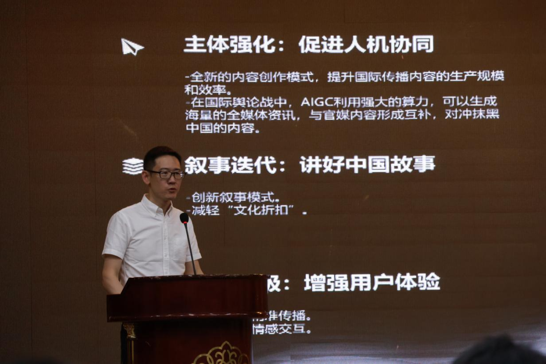 浙江大学传媒与国际文化学院院长、党委副书记、浙江大学融媒体研究中心主任、教育部青年长江学者、国家社科基金重大项目首席专家韦路教授作题为《AIGC时代国际传播的新挑战与新机遇》的主旨发言。