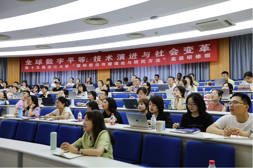 2023年7月3日至7日,第十五届浙江大学“国际前沿传播理论与研究方法”高级研修班在浙江大学顺利举行。本届研修班的主题为“全球数字平等:技术演进与社会变革”,由浙江大学、威斯康星大学、宾夕法尼亚大学、中国新闻史学会国际传播专业委员会和中国新闻史学会网络传播史专业委员会联合举办。在五天的时间里,来自国内外的专家学者和学员们通过主题讲座、线下参观、论文展示等多种形式深入研究国际传播学界所面临的重大问题,共同探讨全球数字平等的理论与实践来应对全球变局的挑战。