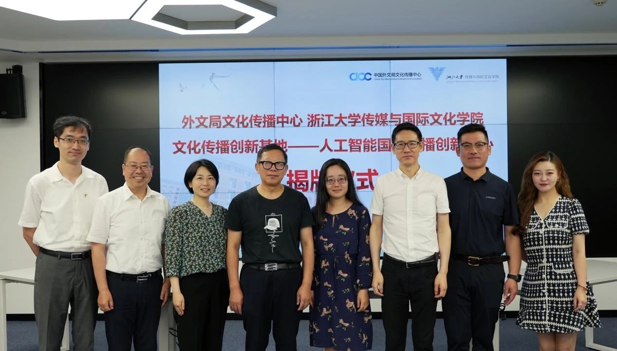 2023年6月29日,由中国外文局文化传播中心与浙江大学传媒与国际文化学院共建的人工智能国际传播创新中心揭牌仪式在浙江大学紫金港校区顺利举办。