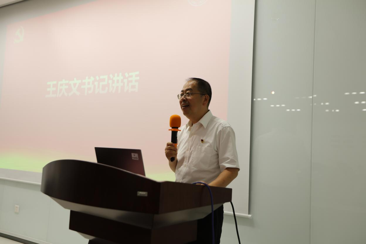 王庆文书记参加颁奖并作讲话,他首先对获奖的集体和个人表示热烈的祝贺,并介绍了目前传媒学院主题教育开展调研情况以及取得的阶段性成果,同时也提出了三点要求:第一,要坚定理想信念。要不断加强党的理论学习,提高政治站位;以分党校为载体,加强党的创新理论武装党员师生。第二,要练就过硬本领,在构建中国哲学社会科学的自主知识体系过程中,发挥作用,更高要求高质量地完成各项工作;第三,希望党员都能够在岗位上做出应有的贡献,在党中央的指引下,在校党委的领导下,在学院群体党员的共同努力下,把学院建设得越来越好。