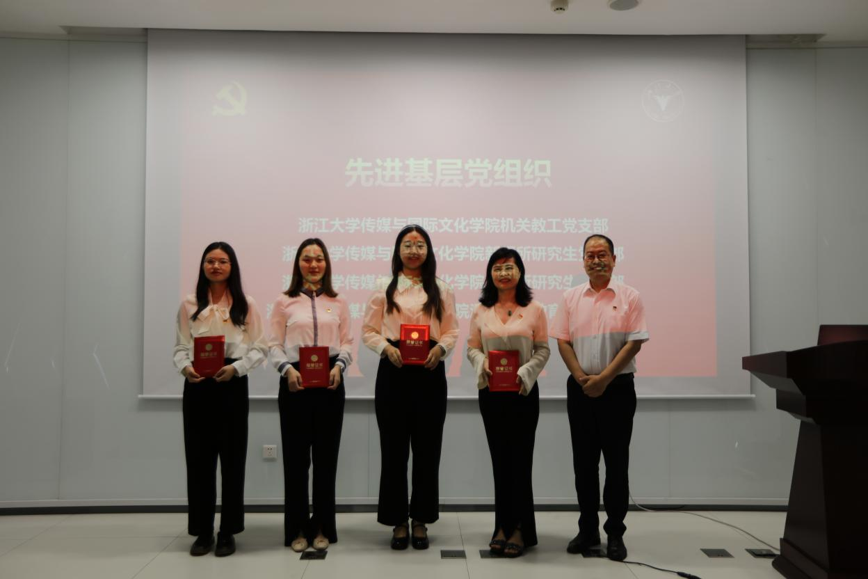 会上,对2023年浙江大学传媒与国际文化学院的19名优秀共产党员和4个先进党组织进行表彰。