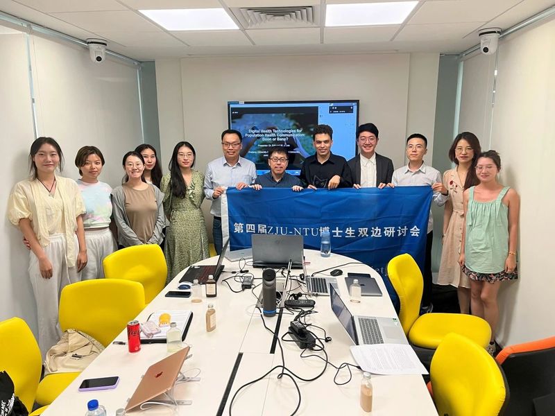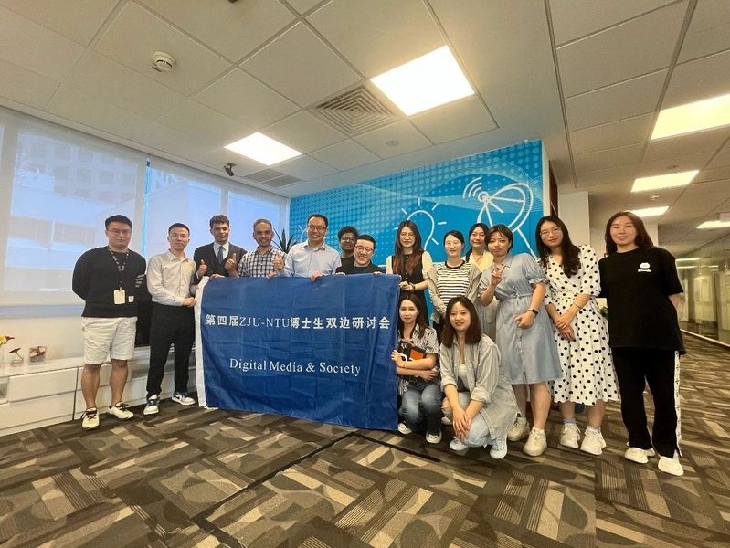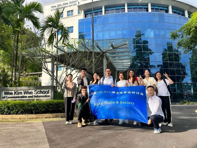 2023年9月13日至14日,浙江大学传媒与国际文化学院和新加坡南洋理工大学黄金辉传播与信息学院联合举办以“Digital Media & Society”为主题的第四届博士生双边研讨会。在百人计划研究员陈宏亮老师的带领下,浙江大学传媒与国际文化学院的10名博士研究生赴新加坡南洋理工大学黄金辉传播与信息学院参会。本次研讨会在线下线上同时进行,两校师生围绕数字媒体的热门议题,展开了热烈讨论。