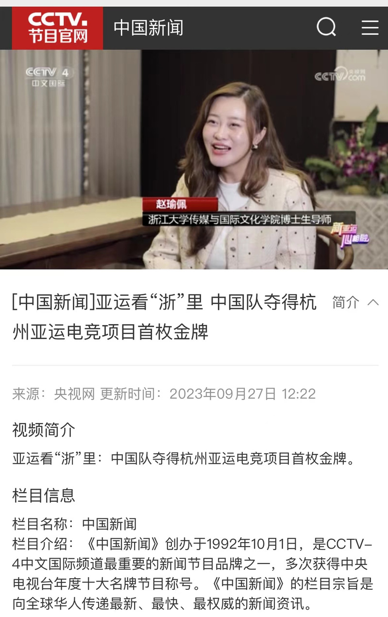 图:赵瑜佩老师接受cctv4亚运专访