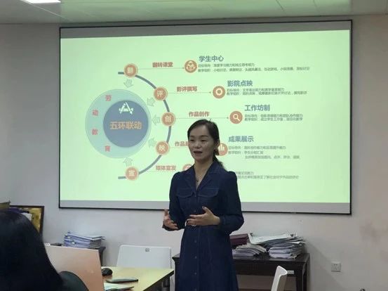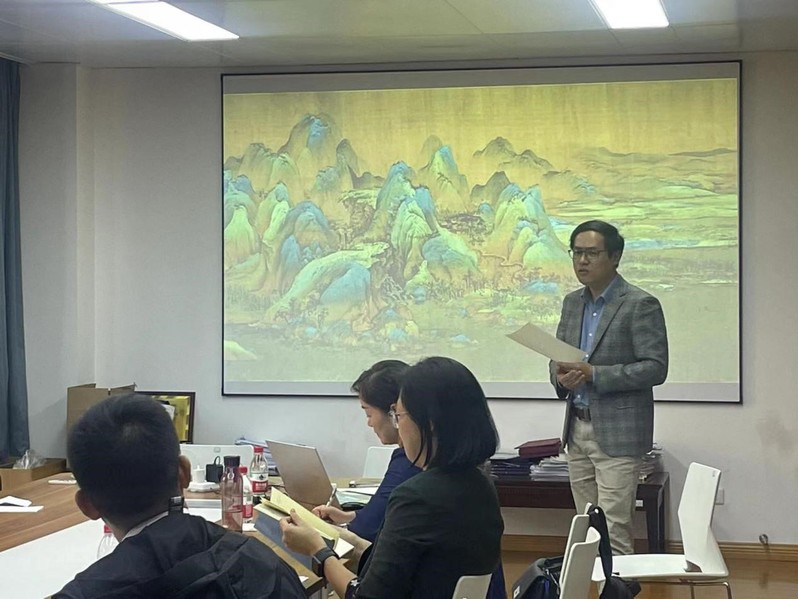 传媒与国际文化学院特聘副研究员张佳峰进行了“初发芙蓉与错彩镂金”的课程试讲,随后,刘翔、陆建平、吴赟、章燕等诸位老师围绕课件设计、课程导入、授课节奏和师生互动等教学方面予以点评和指导。