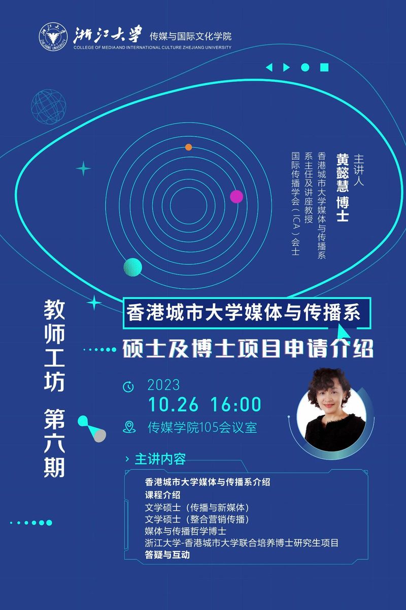 讲座预告 | 香港城市大学媒体与传播系硕士及博士项目申请介绍