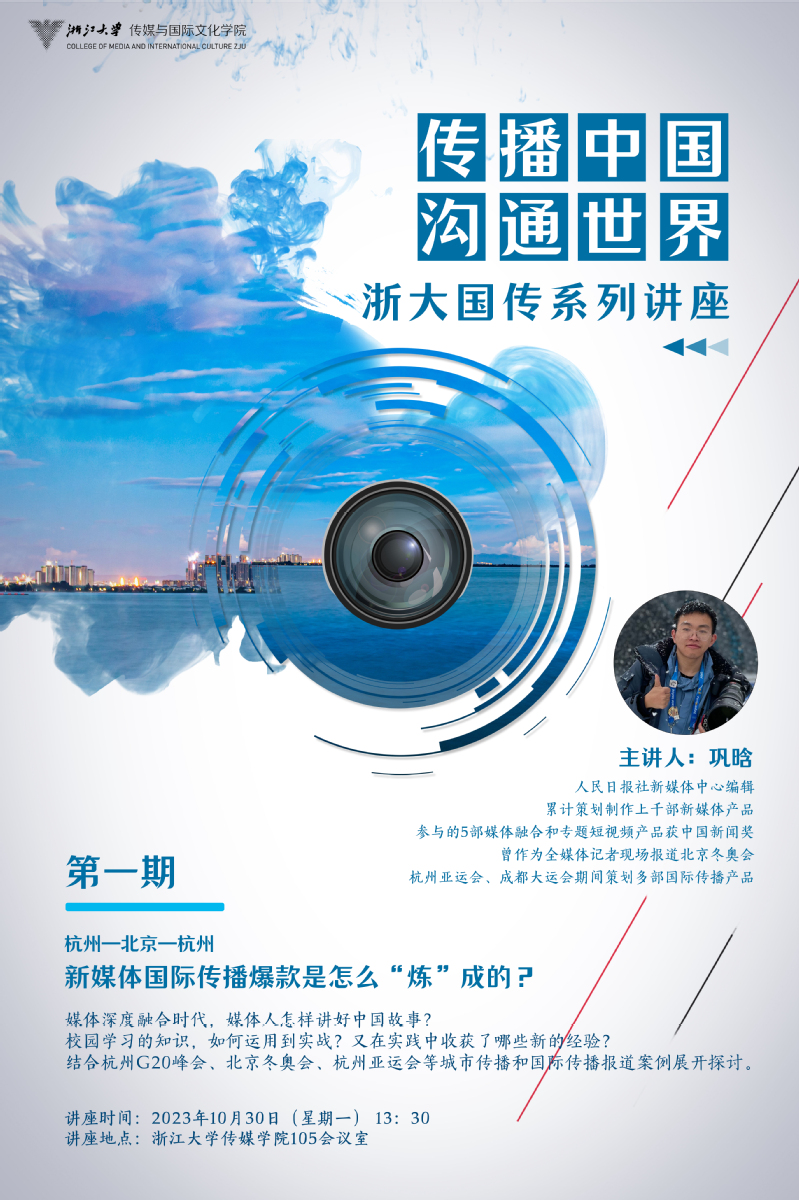 讲座预告 | “传播中国 沟通世界”浙大国传系列讲座第1期:杭州—北京—杭州 :新媒体国际传播爆款是怎么“炼”成的?