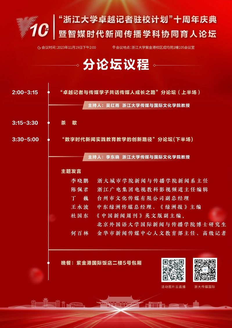 “浙江大学卓越记者驻校计划”十周年庆典暨智媒时代新闻传播学科协同育人论坛