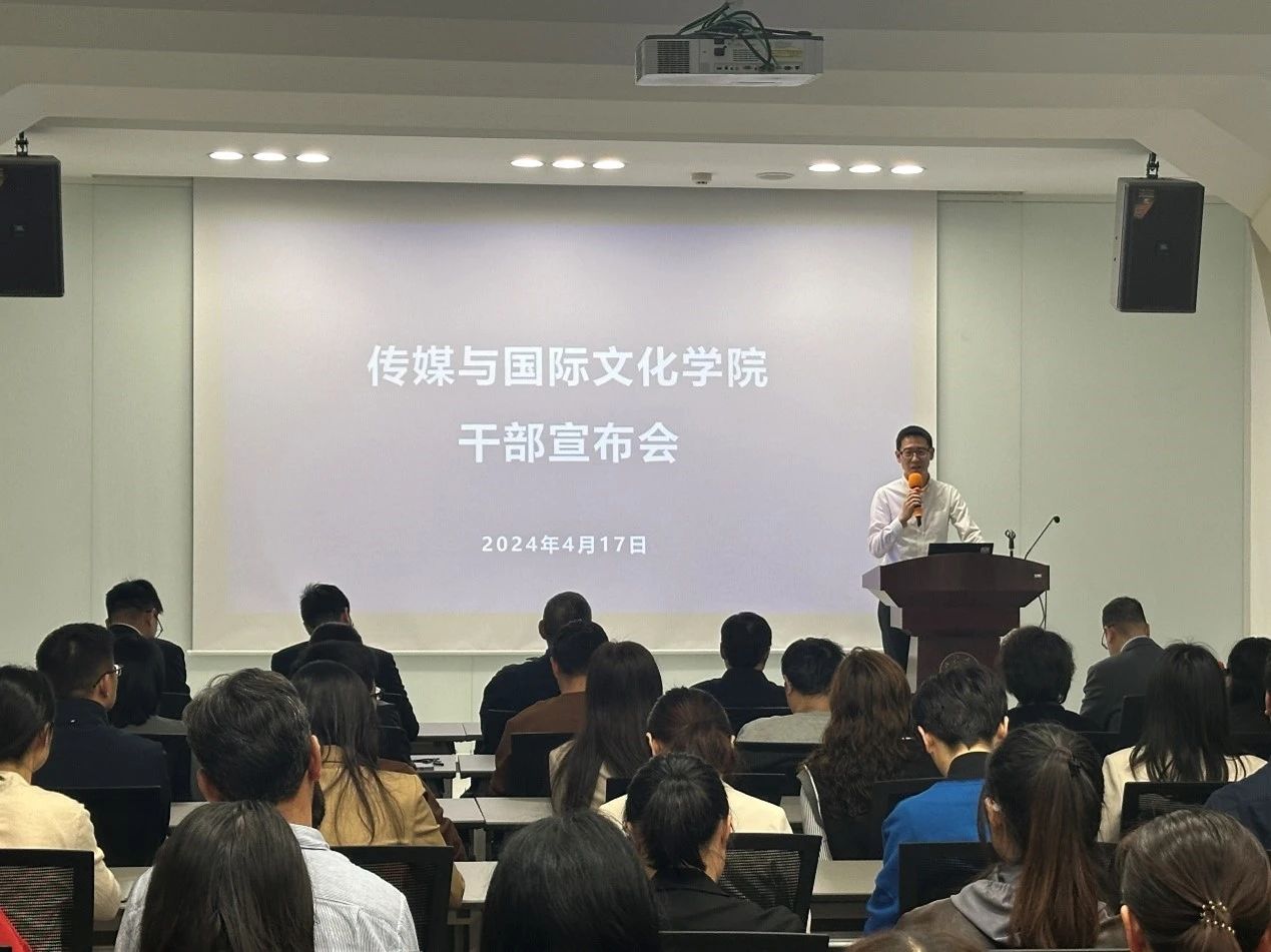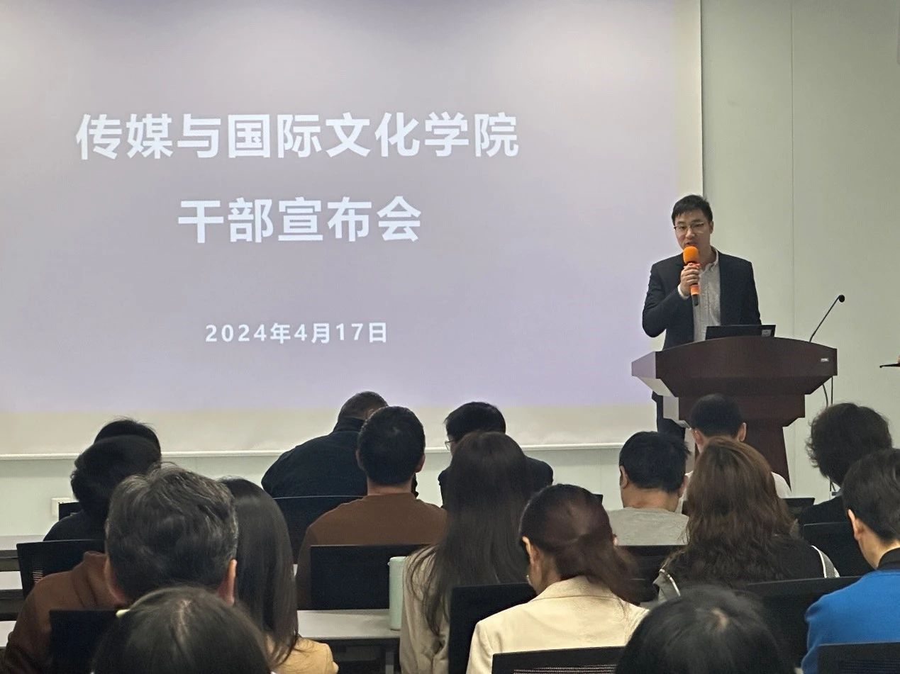 校党委组织部副部长夏雷宣读学校党委行政关于传媒与国际文化学院领导干部的任免决定文件,宣布方兴东任传媒与国际文化学院常务副院长;免去韦路的传媒与国际文化学院院长、党委副书记、委员职务。