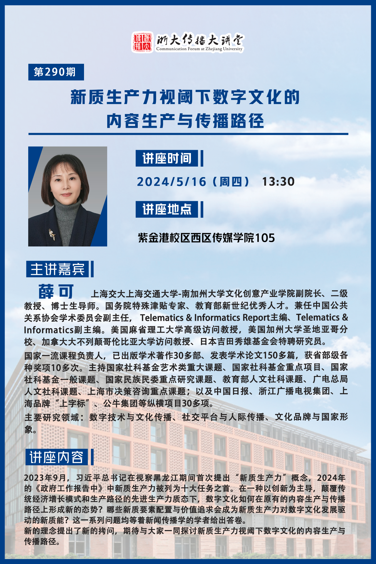 浙大传播大讲堂第290期|新质生产力视阈下数字文化的内容生产与传播路径