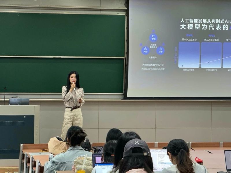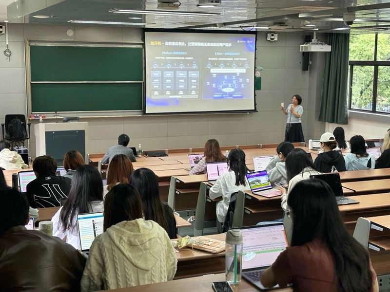 2024年5月31日上午和下午,来自百度商业广告平台产品架构师李琦老师和负责百度商业AIGC运营负责人赵烨老师来到浙江大学,进入课堂,以百度旗下的轻舸和擎舵为例,向同学们分享了人工智能时代如何革新广告传播的生态。