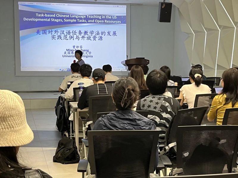 2024年5月20日上午,美国弗吉尼亚大学世界外语中心创办主任曾妙芬教授莅临浙江大学传媒与国际文化学院,进行了题为《美国对外汉语任务教学法的发展实践范例与开放资源》的学术讲座。此次讲座由学院国际文化学系副主任张丽萍老师主持,汉语国际教育专业全体硕士生及对此感兴趣的业内同仁与会聆听并交流。