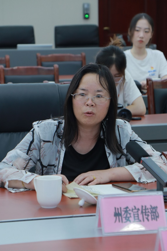 浙江大学传媒与国际文化学院党委书记王庆文及学院师生代表一行与阿坝藏族羌族自治州政府副秘书长陈磊,州委教育工委书记、州教育局党委书记、局长东周,州文广体旅局党组成员、副局长张燕,州新闻传媒中心党委副书记、主任刘树刚,州委宣传部四级调研员、宣教科科长严友华参加本次座谈会。州政府副秘书长陈磊主持座谈会。