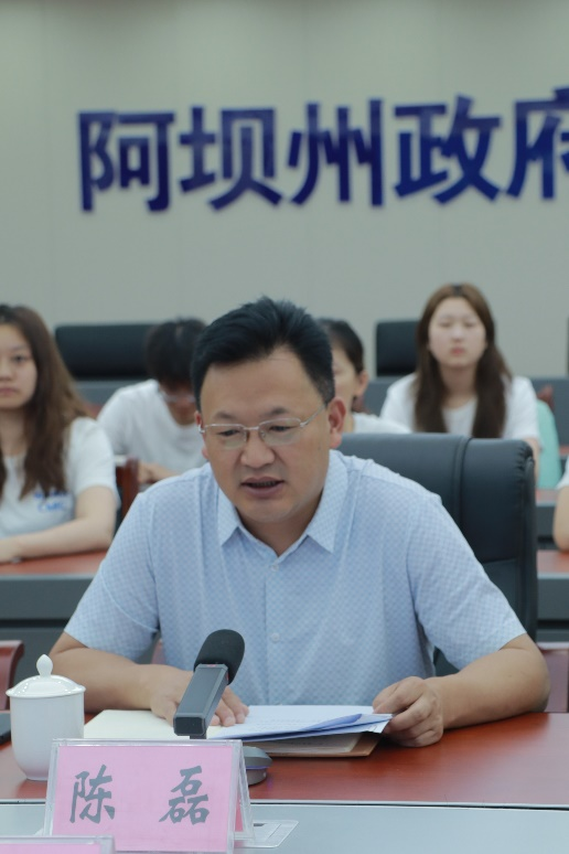 陈磊对浙江大学传媒与国际文化学院一行表示热烈欢迎,也对浙川对口支援的所有干部表示感谢,他期待阿坝州能与浙江大学传媒与国际文化学院建立长效的合作机制,在人才培养、文旅宣传、城市文化传播等方面共建共享,在合作中促进东西互助、共同富裕。